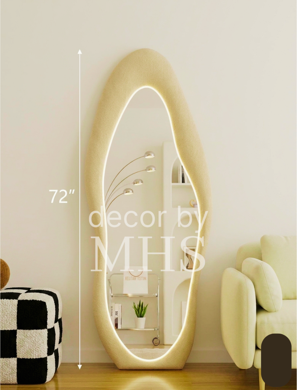Unlike conventional mirrors that prioritize symmetry and utility alone, this piece embraces imperfection as beauty. The organic oval form is intentionally softened to evoke movement, emotion, and natural flow—mirroring the irregular elegance found in nature.